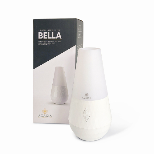 Create the perfect ambience at home or in the office with the modern and elegant aroma diffuser Bella. The two mist settings – continuous or intermittent – allow you to choose an aromatherapy experience to meet your unique needs. Shaped like an inverted cone with a sharp diamond-cut design, this diffuser has a rotating multi-coloured LED light to suit every decor and mood. The LED light can also be used separately to the diffuser as a night lamp.